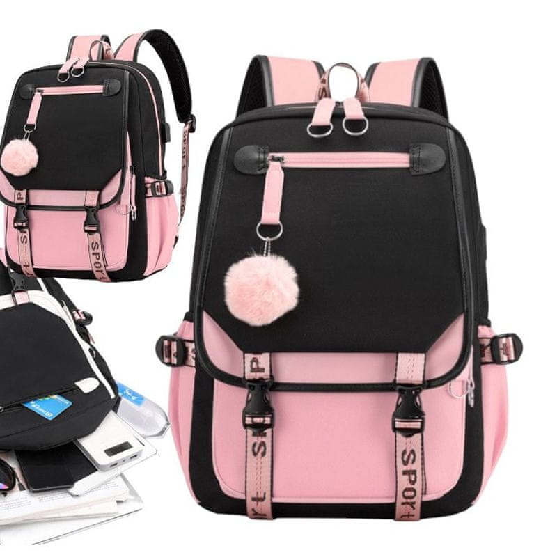 Šolska torba – prostoren in dvokomorni nahrbtnik, glavni predal za knjige, 3 predelki za peresnico in pribor, 3 žepi na sprednji strani nahrbtnika, 2 stranska žepa za stekleničko, izhod za slušalke in USB kabel, možnost priklopa power bank. Dimenzije 46 × 29 × 16 cm. Celoten opis