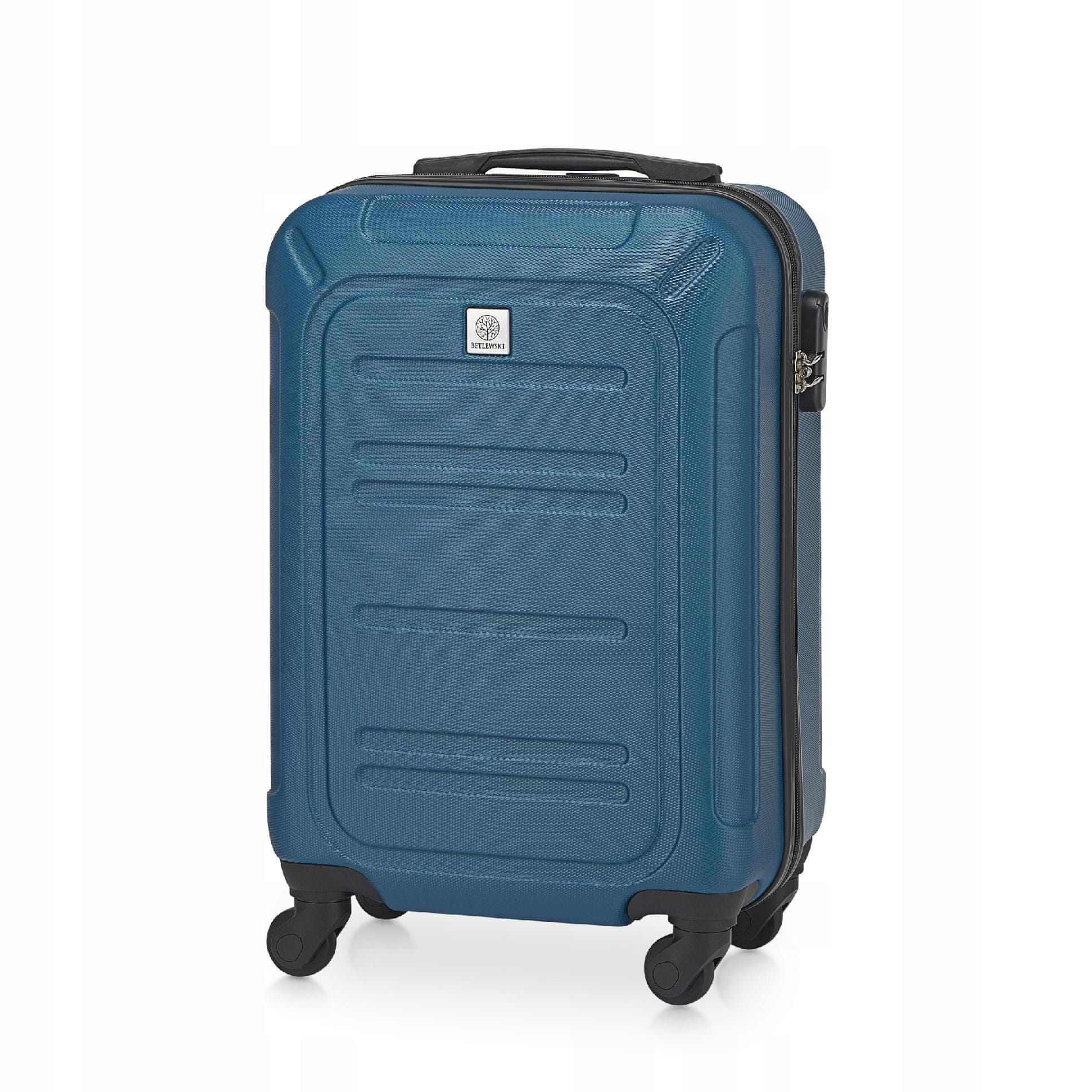 BETLEWSKI Potovalni kovček na 4 kolesih, majhen Kovček na kolesih velikosti S znamke Betlewski je dobra izbira, ker: izbirate izdelek poljske blagovne znamke, znane po visoki kakovosti svojih izdelkov; izpolnjuje zahteve številnih letalskih družb za ročno prtljago; ima privlačno barvo in elegantno obliko; izdelan je iz močnega ABS materiala – odporen je na morebitne poškodbe in udarce, ki se lahko pojavijo pri nalaganju prtljage na letalo; Ima 4 vrtljiva kolesa in teleskopski ročaj ter je opremljen s kombinacijsko ključavnico. Majhen, priročen kabinski kovček Gravity – idealen za kratka potovanja Majhen, sodoben, izjemno močan kovček Gravity poljske znamke Betlewski je izdelan iz modrega, trdega, odpornega na poškodbe ABS materiala. Idealen je za kratka potovanja, podaljšane vikende ali enodnevna poslovna potovanja. Kovček je opremljen s 4 močnimi plastičnimi kolesi, ki se lahko vrtijo za 360 stopinj, kar je izjemno priročno pri potiskanju kovčka. Teleskopski ročaj z nastavljivo dolžino omogoča izjemno udobno potovanje. Kovček je enostaven za uporabo, vsak manever je gladek, zato sploh ne boste čutili njegove teže. Potovanje s tem kovčkom je čisti užitek! Teleskopski ročaj bo olajšal hitro premikanje. Prtljaga ima raztegljiv, teleskopski ročaj, zaradi katerega lahko kovček enostavno in prijetno vodite. Odziva se na vaše gibe in vam zlahka sledi, kamor koli greste! Udobje pri prenašanju Na vrhu kovčka je močan ročaj. Zahvaljujoč njemu lahko kovček enostavno dvignete in pospravite v kabino ali prtljažnik. Ročaj je trpežen in trdno pritrjen – to je kovček, ki vas ne bo pustil na cedilu! Kombinacijska ključavnica – poskrbite za varnost svojih stvari. Kovček se zapira z dvojno zadrgo, dodatno zavarovano s kombinacijsko ključavnico. Kombinacijska ključavnica zagotavlja, da nepooblaščena oseba ne more dostopati do notranjosti vašega kovčka, zato ste lahko na vsaki stopnji potovanja prepričani o njegovi vsebini. Zmogljivost, funkcionalnost – vse v majhnem kovčku Notranjost kovčka je zelo prostorna in funkcionalna. Kovček ima prostornino 37 litrov. V notranjosti je črna, elegantna, močna poliestrska podloga z logotipom blagovne znamke Betlewski. Na eni strani kovčka je elastičen trak, ki drži prtljago na mestu. Notranjost kovčka je na pol razdeljena s funkcionalno pregrado, ki se zapira z zadrgo. Zahvaljujoč tej priročnosti vse, kar pospravite v kovček, ostane na svojem mestu. Močna 360° kolesa – nikoli vas ne bodo pustila na cedilu. Kovček je opremljen s 4 močnimi plastičnimi kolesi, ki se lahko vrtijo za 360 stopinj. Ta kolesa in teleskopski ročaj zagotavljajo neverjetno udobje pri potiskanju kovčka. En gib in sledila ti bo povsod! Trpežen in zanesljiv – kovček, ki bo preživel vsako potovanje. Kovček je izdelan iz močnega materiala – ABS. ABS je akrilonitril-butadien-stiren kopolimer – material z visoko stopnjo trdote in nizko prožnostjo. Kovčki iz ABS plastike so zelo trpežni, vendar se izogibajte prevelikemu pritisku nanje. Kovčki iz tega materiala so priporočljivi predvsem kot ročna prtljaga, vendar jih z veseljem izbirajo tudi ljudje, ki potujejo z drugimi prevoznimi sredstvi, ne le z letali. Lepa oblika – všeč nam je dober dizajn. Kovček je izjemno eleganten in moderen. Ni gladka – pri načrtovanju smo se odločili za rahlo teksturirano površino, ki je bolj odporna na praske. Čudovita modra barva bo vsakemu vašemu potovanju dodala eleganco! Izberite dobro, preverjeno blagovno znamko. Vsako podrobnost na kovčku smo premislili. Na zadrge in ročaj smo namestili logotip blagovne znamke Betlewski. Poleg tega smo ga opremili z elementi, ki potrjujejo izvirnost izdelka, npr. etikete iz blaga in kartona. Parametri indeks: BWA-020S MODRA material: ABS znamka: BETLEWSKI barva: modra širina: 37 cm višina: 55 cm globina: 24 cm dolžina teleskopskega ročaja: 47 cm kolesa: 4, plastika, vrtenje za 360 stopinj prostornina: ~37 l teža: 2,5 kg