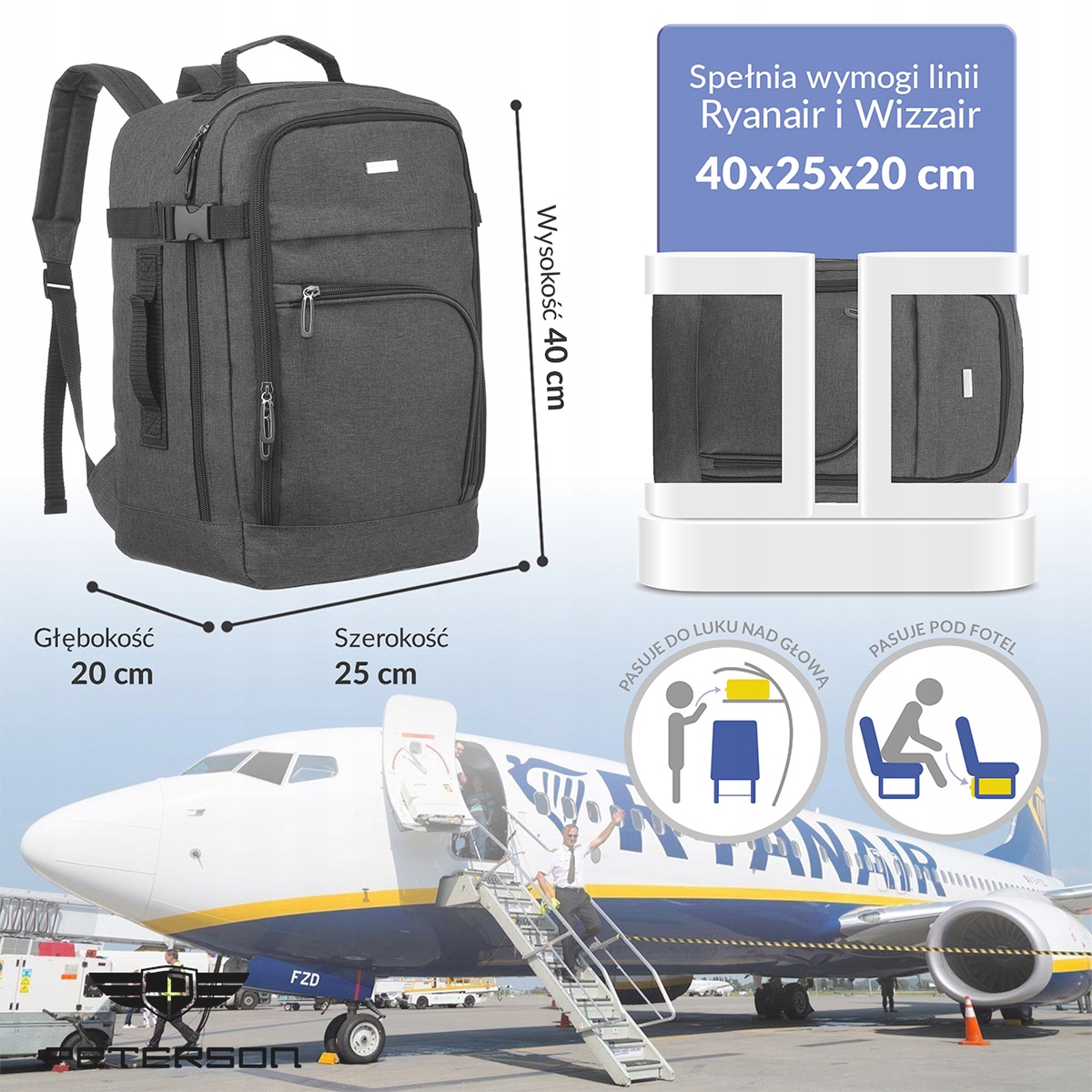 Prostorna kabina Wizz Air in Ryanair PETERSON® potovalni nahrbtnik