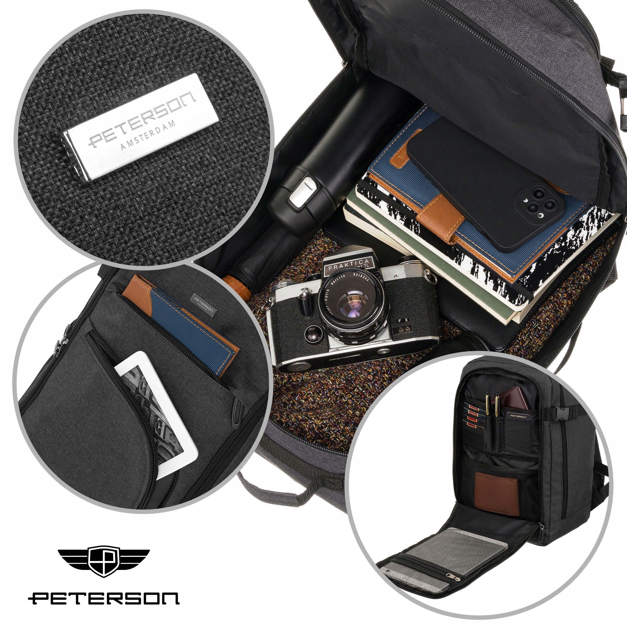 Udoben potovalni nahrbtnik z dvema predelkoma priznane blagovne znamkePETERSON®. Model v športnem stilu in klasičnih barvah. Narejeno za izpolnjevanje zahtev letalske ročne prtljage.