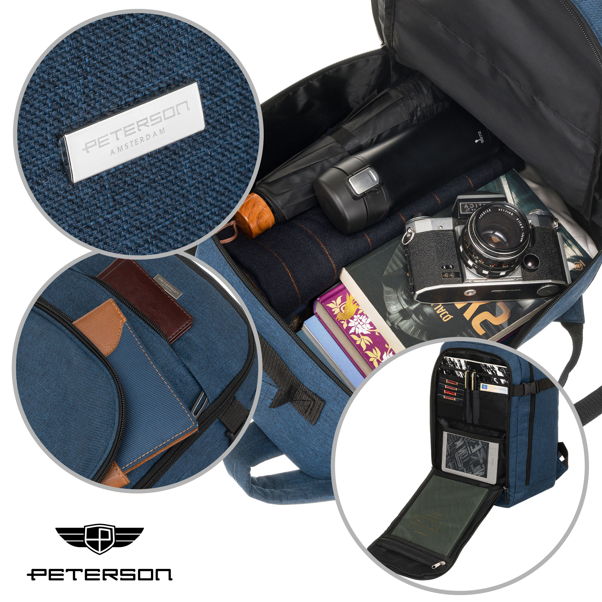 Udoben potovalni nahrbtnik z dvema predelkoma priznane blagovne znamkePETERSON®. Model v športnem stilu in klasičnih barvah. Narejeno za izpolnjevanje zahtev letalske ročne prtljage.