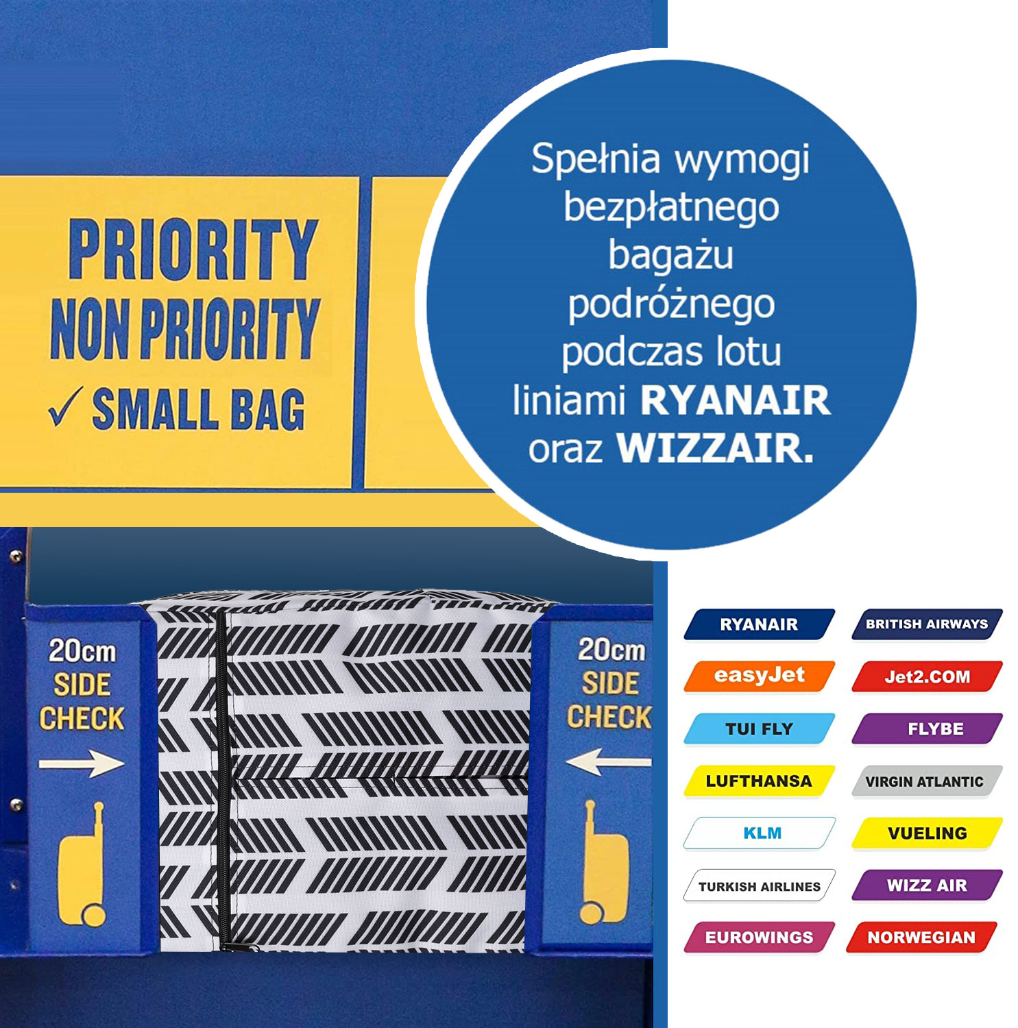 Ta nahrbtnik je odlična izbira za vsako elegantno potovanje! Popoln je kot ročna prtljaga Wizzair/Ryanair – izpolnjuje zahteve glede dimenzij (40×20×25), zato ga lahko brezplačno vzamete s seboj. #️⃣ Največje dimenzije brezplačne majhne ročne prtljage na Ryanair – 40 × 25 × 20 cm, brez omejitve teže (mora se prilegati pod sedež spredaj) #️⃣ Največje dimenzije brezplačne majhne ročne prtljage na Wizzair