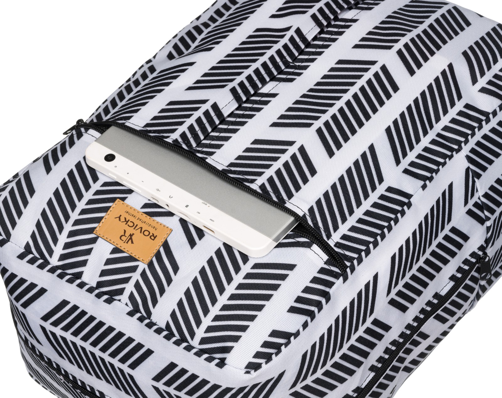 varen žep z zadrgo za manjše predmete. Opremljen z držalom za kovčke