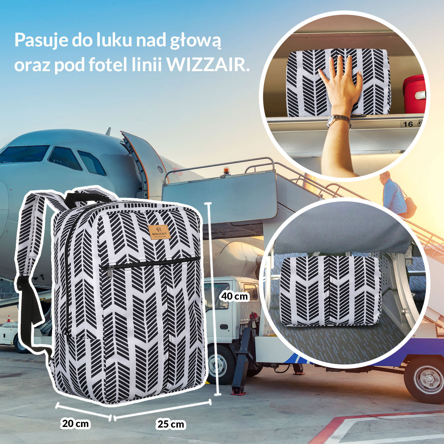 ROVICKY® Lahek nahrbtnik – Ročna prtljaga za Ryanair/Wizzair