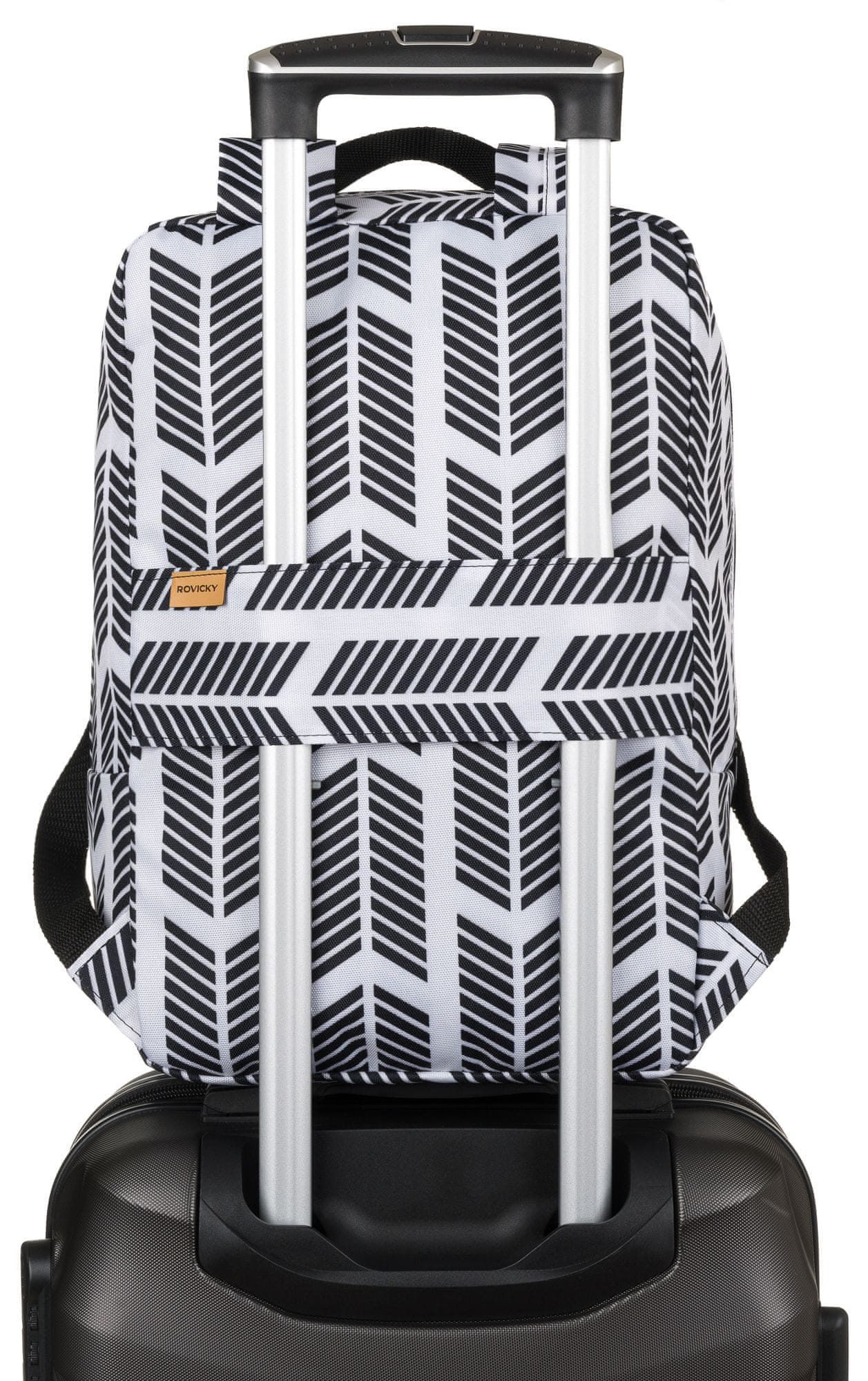 Praktična rešitev, ki bo vsako potovanje naredila veliko bolj prijetno! Na hrbtni strani nahrbtnika je ročaj, ki ga lahko pritrdite na kovček. Nastavljivi naramni trakovi