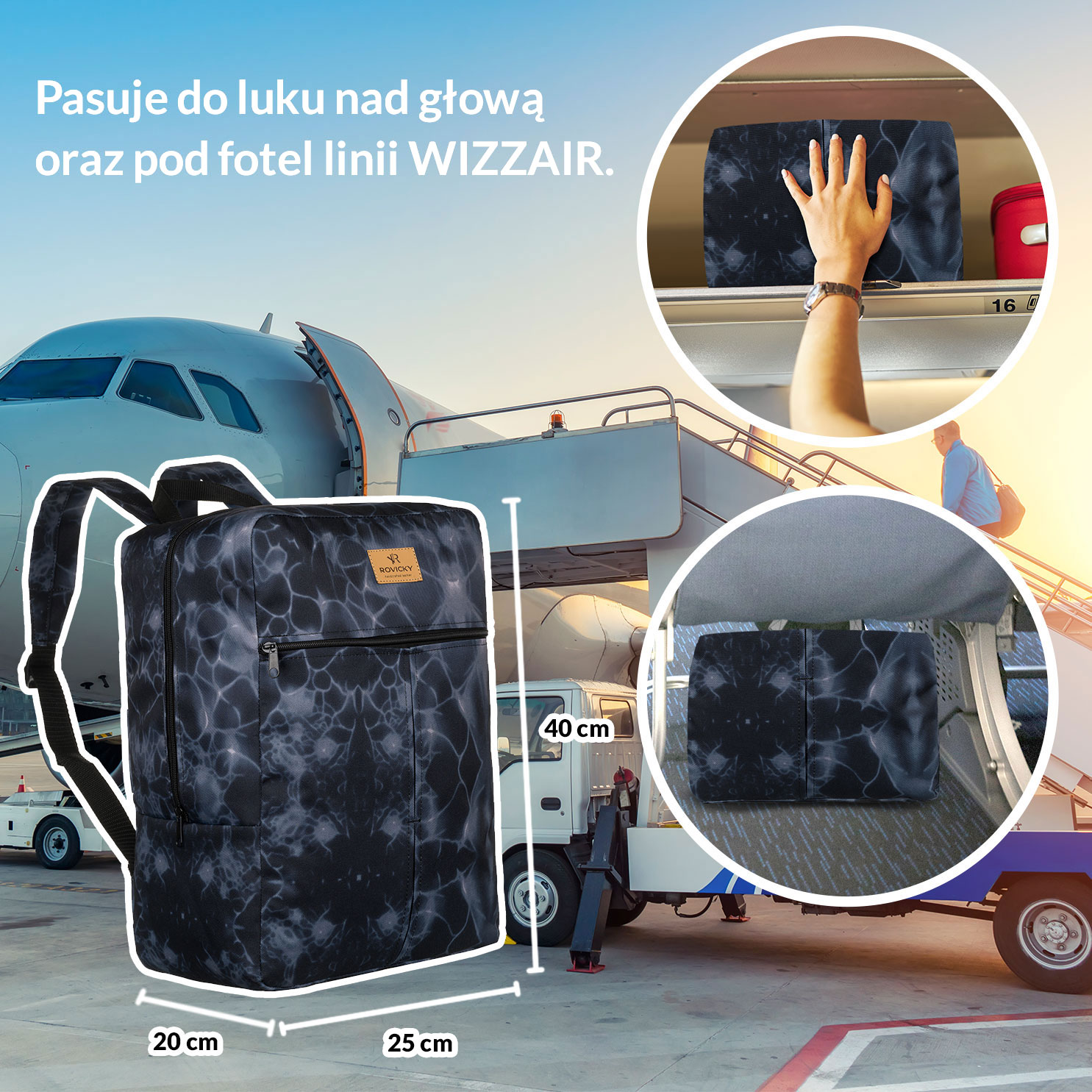 Ta nahrbtnik je odlična izbira za vsako elegantno potovanje! Popoln je kot ročna prtljaga Wizzair/Ryanair – izpolnjuje zahteve glede dimenzij (40×20×25), zato ga lahko brezplačno vzamete s seboj. #️⃣ Največje dimenzije brezplačne majhne ročne prtljage na Ryanair – 40 × 25 × 20 cm, brez omejitve teže (mora se prilegati pod sedež spredaj) #️⃣ Največje dimenzije brezplačne majhne ročne prtljage na Wizzair
