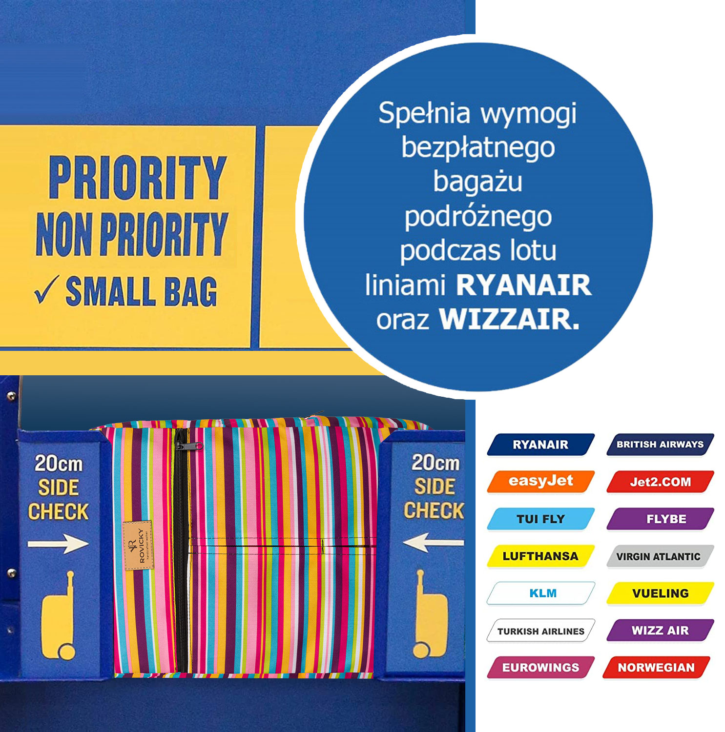Ta nahrbtnik je odlična izbira za vsako elegantno potovanje! Odlična je kot ročna prtljaga Wizzair/Ryanair – izpolnjuje zahteve glede dimenzij (40×20×25) tako da jo lahko vzamete brezplačno na krov.