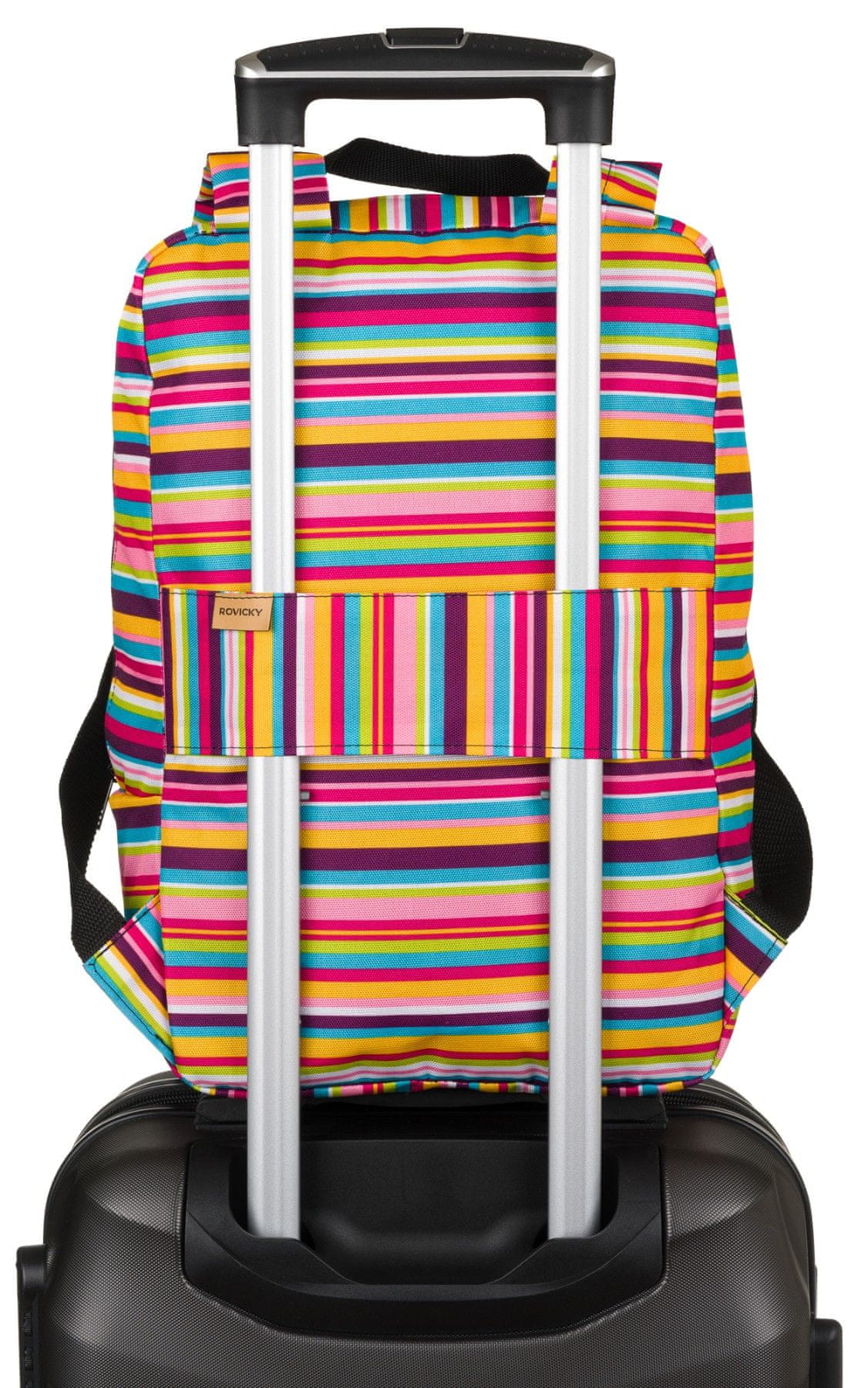 Praktična rešitev, ki bo vsako potovanje naredila veliko bolj prijetno! Zadnji del nahrbtnika ima ročaj, ki ga lahko pritrdite na kovček.