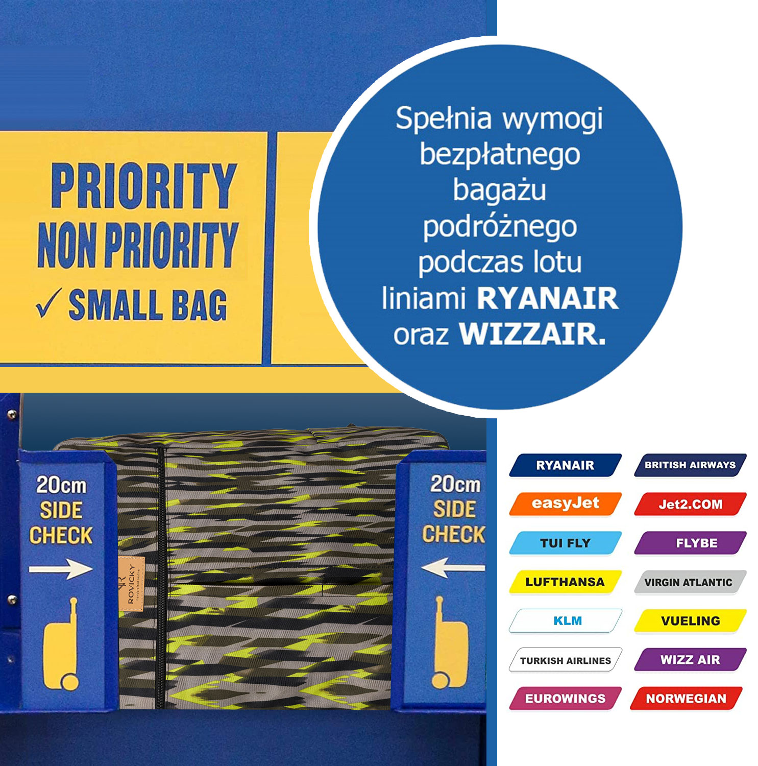 ROVICKY® nahrbtnik – ročna prtljaga za Ryanair/Wizzair