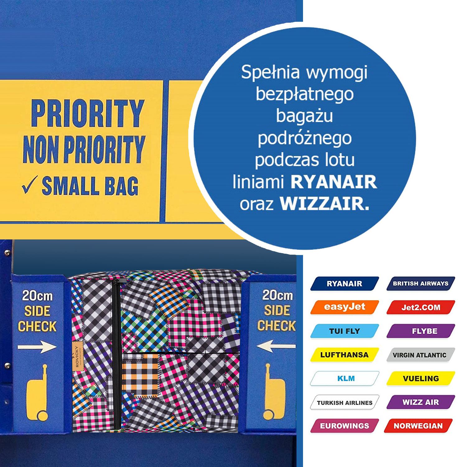 ROVICKY® nahrbtnik – ročna prtljaga za letalo – posvečen Ryanair/Wizzair