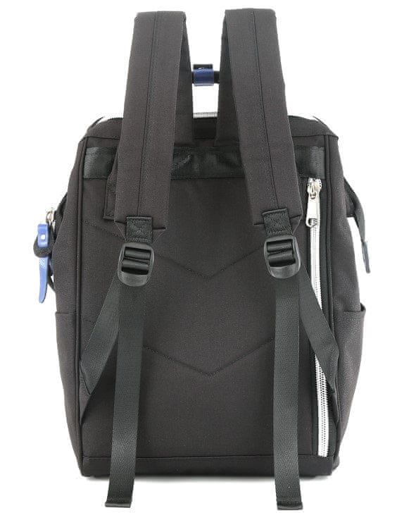Ima dva široka naramna trakova za udobno nošenje. Trakovi so nastavljivi, da se popolnoma prilegajo vaši postavi in višini. Ima tudi dvojni ročaj.