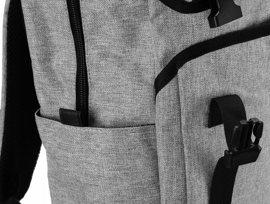 Ima veliko praktičnih žepov, vključno z dvema namenskima predelkoma za naprave – enim velikim, za prenosnik do 15,6 palcev, in manjšim, v katerega lahko na primer shranite tablični računalnik. Dodatno je opremljen z