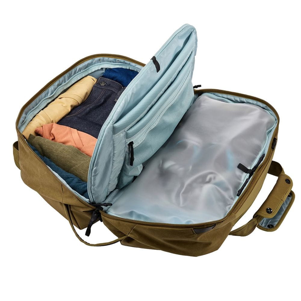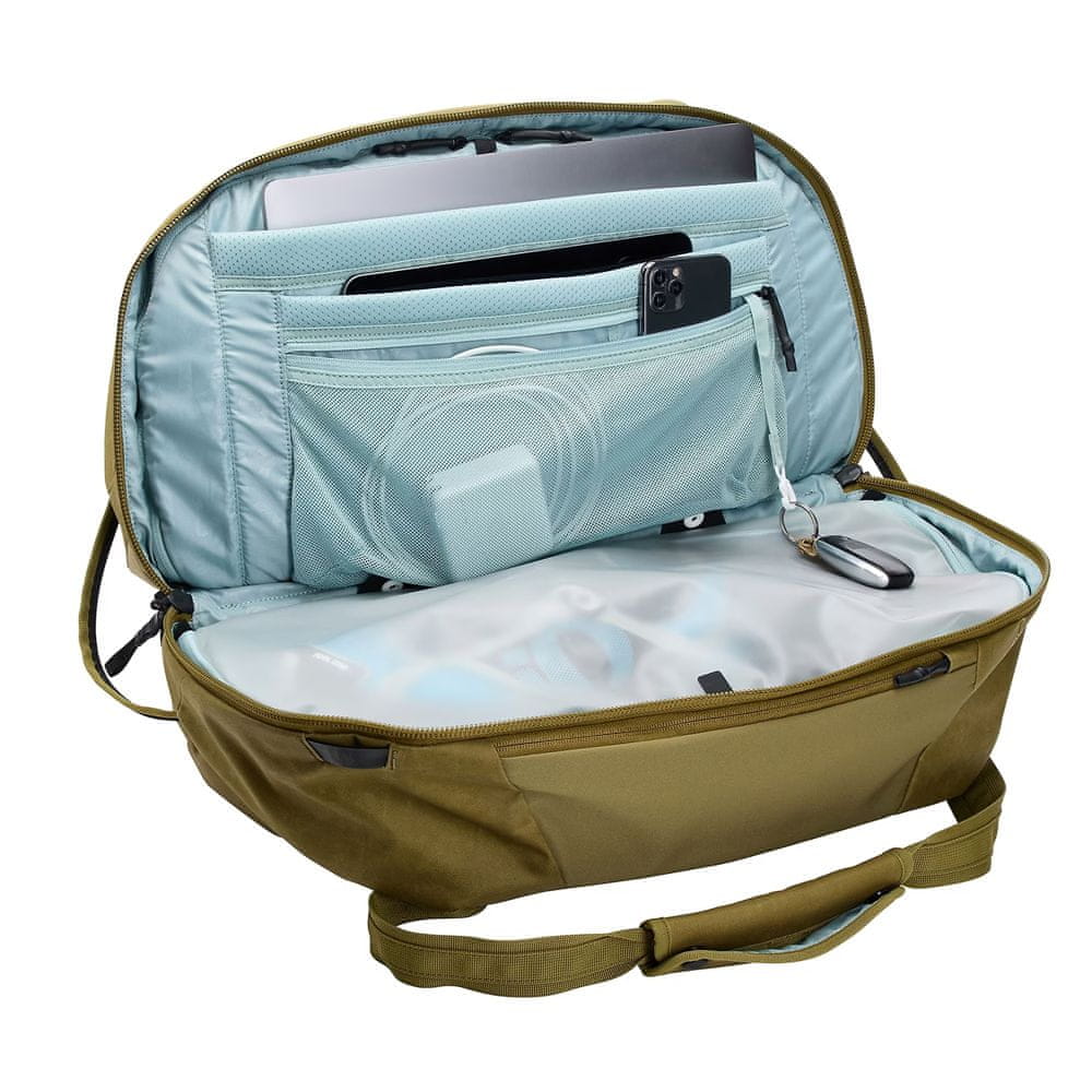 Thule Aion je torba za delo, potovanja in šport. Je večnamenska potovalna torba, ki ponuja ločeno shranjevanje čistih in umazanih oblačil, ter varno shranjevanje prenosnika in tablice. Odlikuje jo izjemna kvaliteta, prostornost, vsestranska uporabnost, vzdržljivost, odstranljiv ramenski trak in široko odpiranje. Poseben predal s TPU oblogo zadrži vonjave, umazanijo in vlago v za to namenjenem predelu torbe, kar je idealno za prenašanje umazanih ali vlažnih športnih oblačil. Poskrbite za boljšo organizacijo in varnost vaše prtljage s torbo Aion.