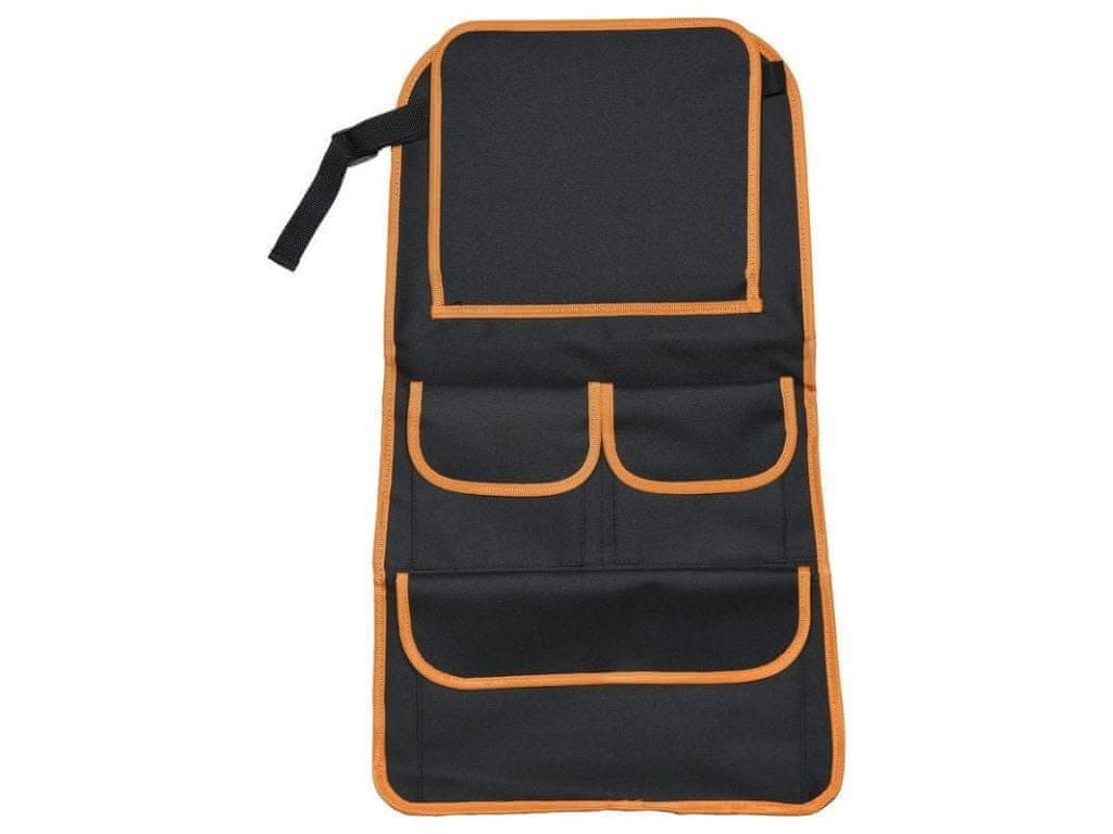Organizator za sprednji sedež z žepi in praktično mizico je inovativna in funkcionalna rešitev za vzdrževanje reda in udobja v vozilu. Z dimenzijami 40,5 × 69,5 cm zagotavlja dovolj prostora za organizacijo različnih predmetov, hkrati pa ščiti sedež pred umazanijo. Ta organizator je izdelan iz 100 % poliestra in okrašen z visokokakovostno oranžno obrobo, ki ne zagotavlja le vzdržljivosti, temveč se tudi estetsko ujema z notranjostjo avtomobila.