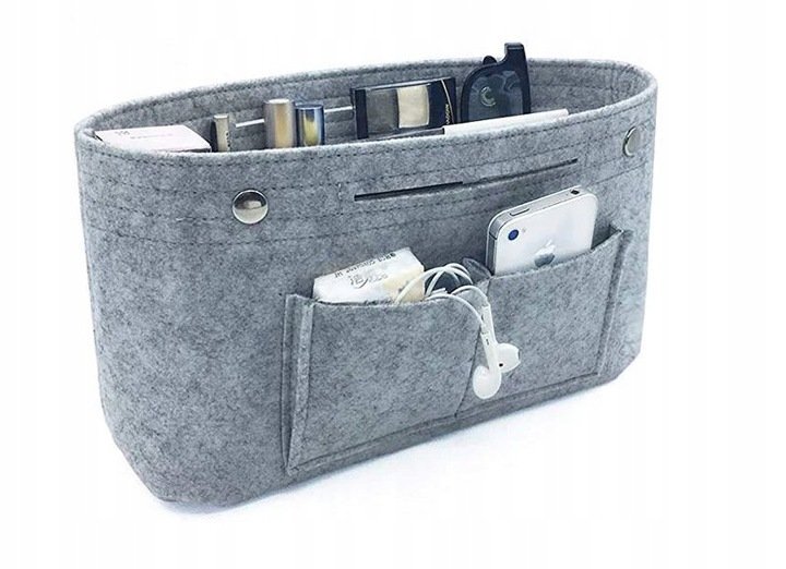 Predstavljamo vam Filcni Organizer za Torbico – popolno rešitev za organizacijo vaših osebnih predmetov na poti. Se vam pogosto zgodi, da iščete ključe ali šminko v globinah vaše torbice? Naš organizator iz trpežnega in mehkega filca je namenjen urejanju drobnosti in vam omogoča hitro in enostavno iskanje. Izdelan je iz univerzalnega sivega, srebrnega filca, ki se popolnoma ujema z večino torbic, vključno s tistimi večjimi, ki lahko sprejmejo tudi format A4. Organizer ima stabilne, a prilagodljive stene, ki se prilagodijo notranjosti vaše torbice. Njegovi dimenziji po polnjenju sta 27 cm dolžine, 11 cm širine in 17 cm višine, kar omogoča, da v njem shranite vse potrebne predmete v enem glavnem prostoru, petih notranjih in treh zunanjih žepih. Posebnost organizatorja je priročni ročaj, ki omogoča enostavno prenašanje ali izvleko iz torbice. Poleg tega zapiranje z dvema praktičnima gumboma še dodatno varuje vaše predmete pred izpadom. Enostavno ga lahko očistite z vlažno krpo, kar vam zagotavlja vzdržljivost filca skozi čas. Njegov sodoben in eleganten dizajn ga naredi primernega za vsakodnevno uporabo in odlično darilo za vse, ki cenijo kombinacijo funkcionalnosti in stila. Ne oklevajte več in svojim dragocenostim zagotovite varnost in red z našim praktičnim organizatorjem za torbico.
