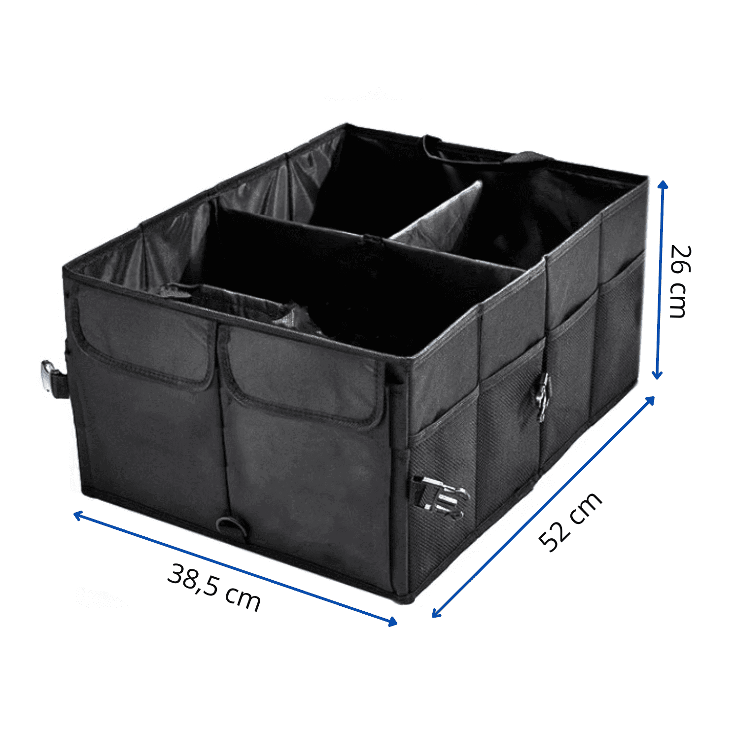 Avtomobilski organizer je nepogrešljiv dodatek za vsakega voznika, ki ceni red in funkcionalnost. Velika prostornina ter premišljena zasnova omogočata, da se odlično prilega skoraj vsakemu prtljažniku.