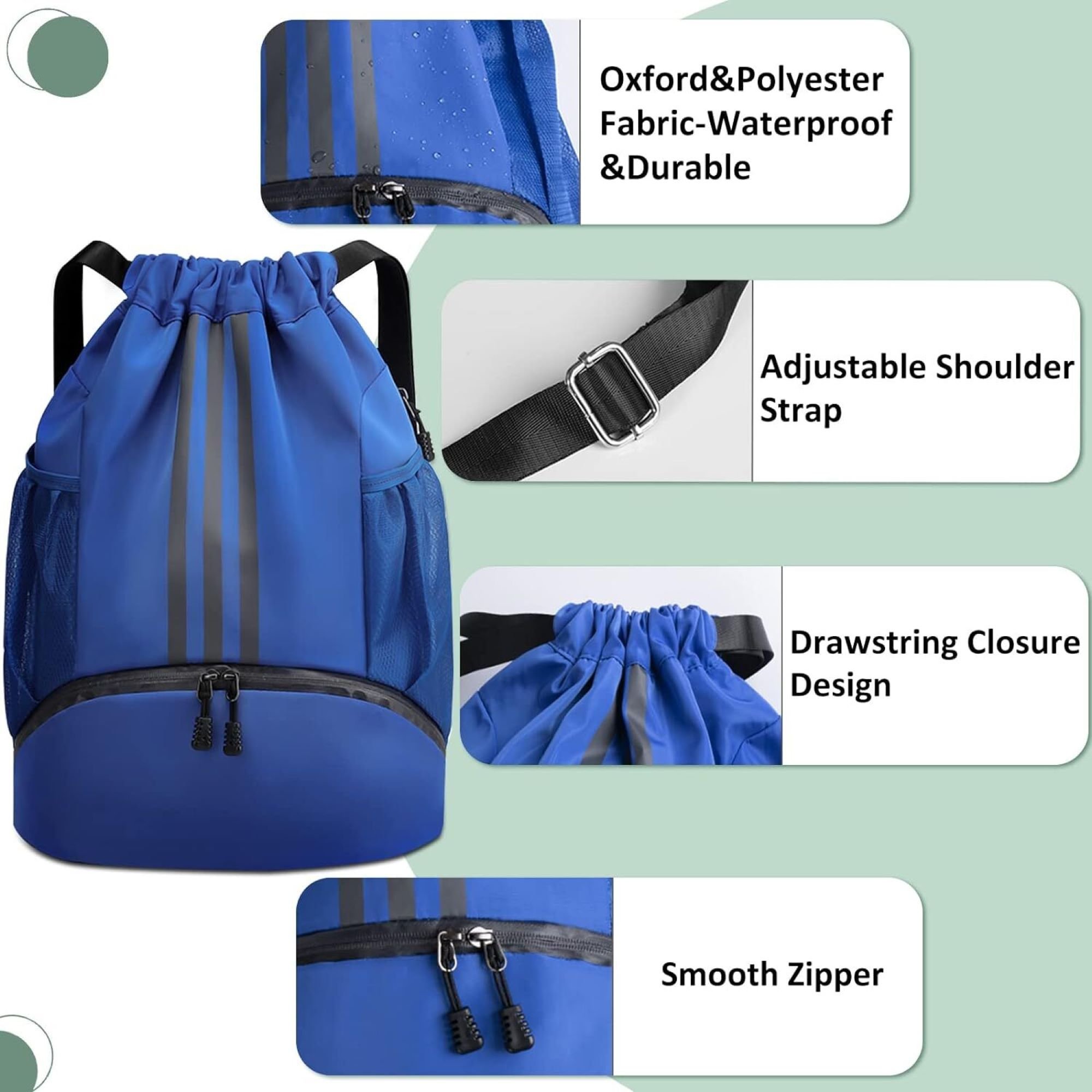 Nahrbtnik je odličen za uporabo v telovadnici, med športnimi dejavnostmi, vadbo joge, plesnimi urami, potovanji, kampiranjem, pohodništvom, športnimi dogodki, treningi in drugim. Je odlično darilo za ženske, moške in otroke.