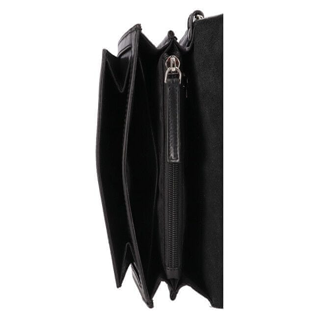 Opomba Moška usnjena torba, črna, z zanko za pas, ključavnico za aktovko, predalom za dokumente, 2 žepoma na zadrgo in predalom za mobilni telefon. Celoten opis