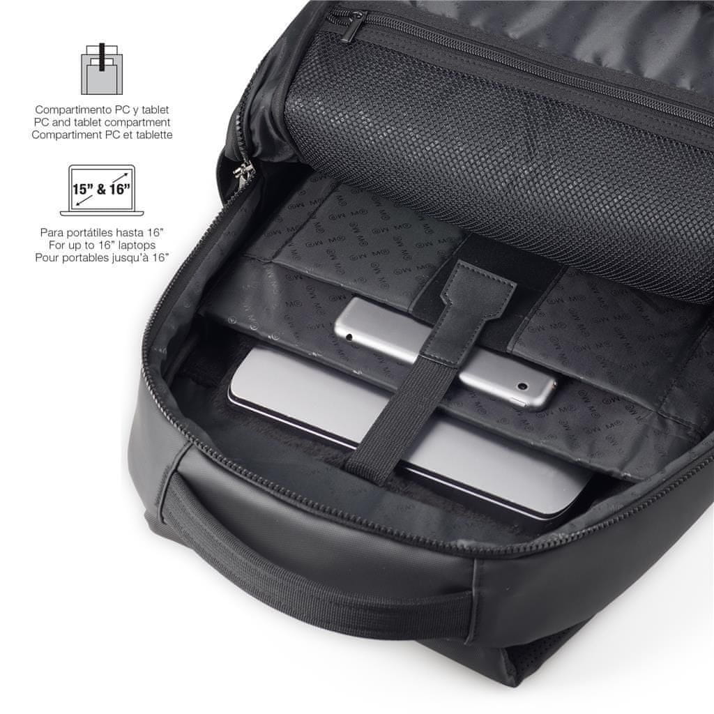 Nahrbtnik velike prostornine z vrhunsko obdelavo. Vsestranski nahrbtnik z več žepi in predelki, ki pokriva potrebe najzahtevnejših. žep z RFID zaščito. Detajli z odbojnim premazom. Ergonomsko hrbtišče s podlogo, ki omogoča zračenje. Varnostna zaponka. Primeren za prenosnik do velikosti. Celoten opis