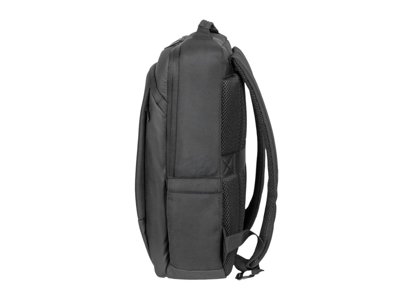Način: nahrbtnik Specializacija: prenosni računalnik Posebna velikost: 15,6" Predelki: 2 Namenski žepi/oddelki: 1: Pripomočki, dokumenti, prenosnik, tablični računalnik, mobilni telefon Skupno število žepov: 8 Število zunanjih žepov: 3 Število notranjih žepov: 5 Prostornina: 16 l Poliester 1680D Zaklepanje: z zadrgo Barva: črna Oblikovanje: odporen na brizganje, organizator kablov, sistem vozičkov; Ramenski trak: Ne Ročaj: Da Dolžina: 300 mm Širina: 140 mm Višina: 420 mm Dolžina predala za prenosni računalnik: 280 mm Širina predala za prenosnik: 40 mm Višina predala za prenosni računalnik: 380 mm Teža: 850 g