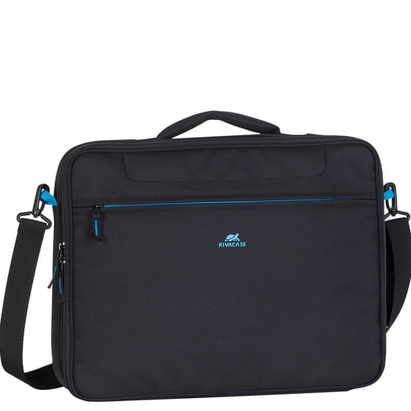 RivaCase torbica 8087 za prenosnike in tablice v velikosti 16". Gre za priznano znamko, ki ponuja funkcijsko dovršene in kvalitetne izdelke po odličnih cenah. Kljub temu, da je torba relativno tanka, so predmeti v njej dobro zaščiteni, saj so predali oblazinjeni in še dodatno preprečujejo poškodbe med nošenjem. V sprednjem delu torbe je predal za shranjevanje dodatkov, telefona in dokumentov. Všita je dvojna zadrga, ki omogoča enostaven in hiter dostop do predmetov v torbi.