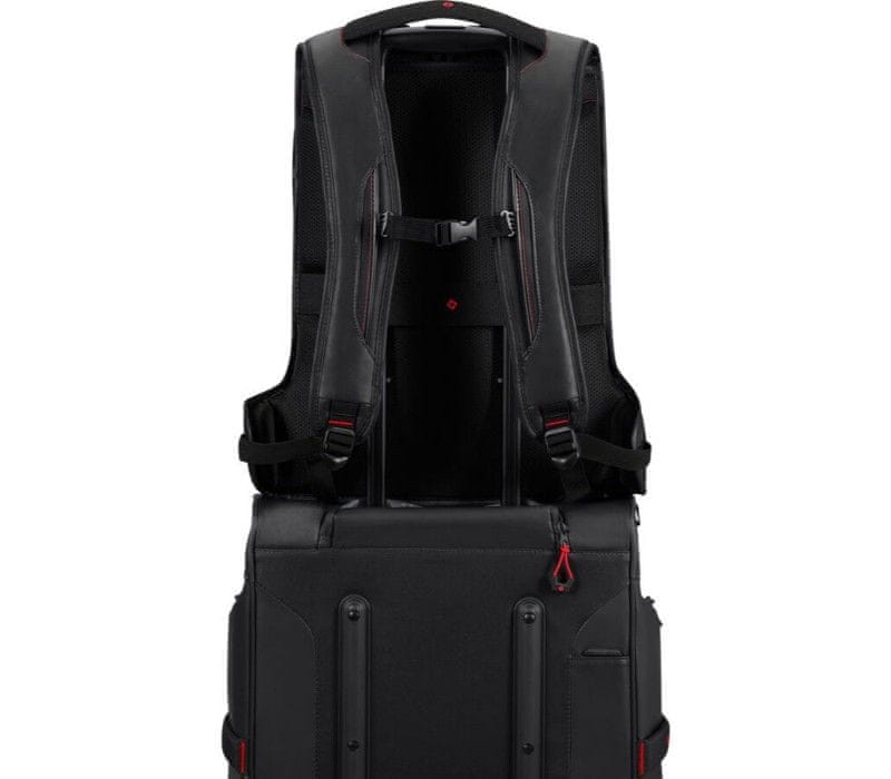 Oblazinjen predal za prenosni računalnik 17,3" / 43,9 cm oblazinjen predal za tablični računalnik 10,5" vodoodporna površina odsevni elementi vodoodporne zadrge pametni rokav – trak za enostavno pritrditev na ročaj kovčka zgornji ročaj odsevni elementi ergonomski trakovi velikost: 35 × 48 × 23 cm teža: 1 kg prostornina: 26 l 2 leti garancije