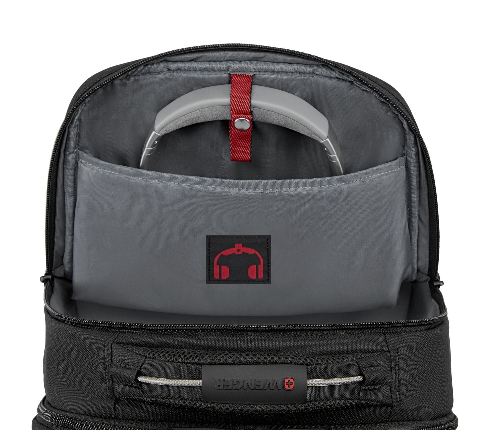 Žep za pripomočke – Ločen žep v nahrbtniku za shranjevanje pripomočkov in ločen prostor za slušalke