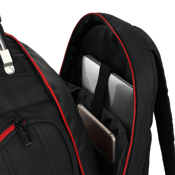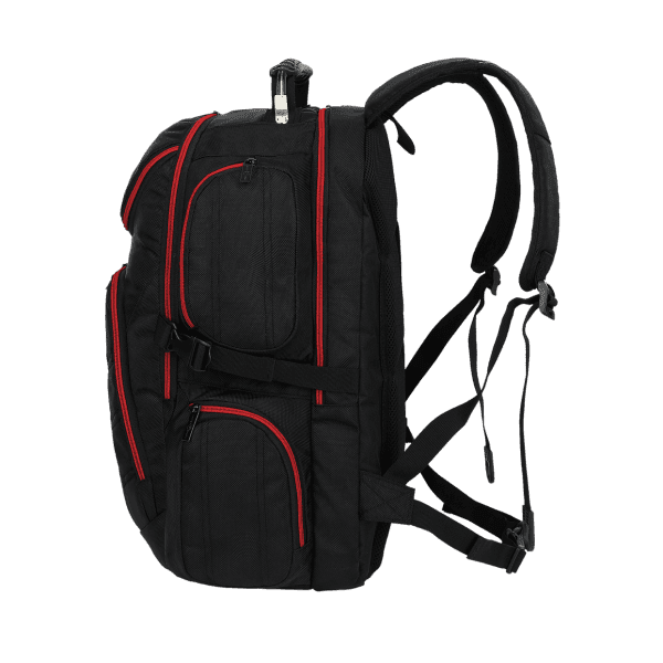 - Število predelkov: 2 glavna predela z zadrgo in dodatnimi notranjimi žepi za prenosne naprave in dodatke, 6 manjših zunanjih predelkov z zadrgo