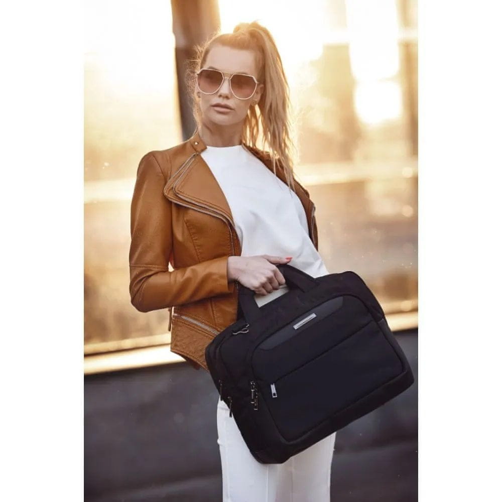 Torba je sestavljena iz dveh glavnih predelkov. Prvi je namenjen za prenosni računalnik. Ima posebej zmehčan žep na ježka, ki dodatno ščiti vašo napravo. Drugi predal je razdeljen na dva predala. Vanj lahko shranite registrator, mape in vse potrebne dokumente.