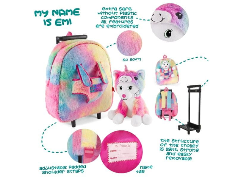 Perletti Otroški nahrbtnik na kolesih s snemljivim plišem Perletti Toys Kawaii Unicorn Cat, 13090