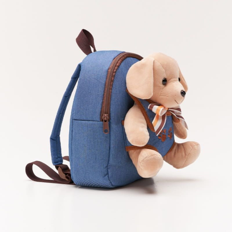Otroški nahrbtnik iz džinsa s snemljivo bež „kužek labradorec“