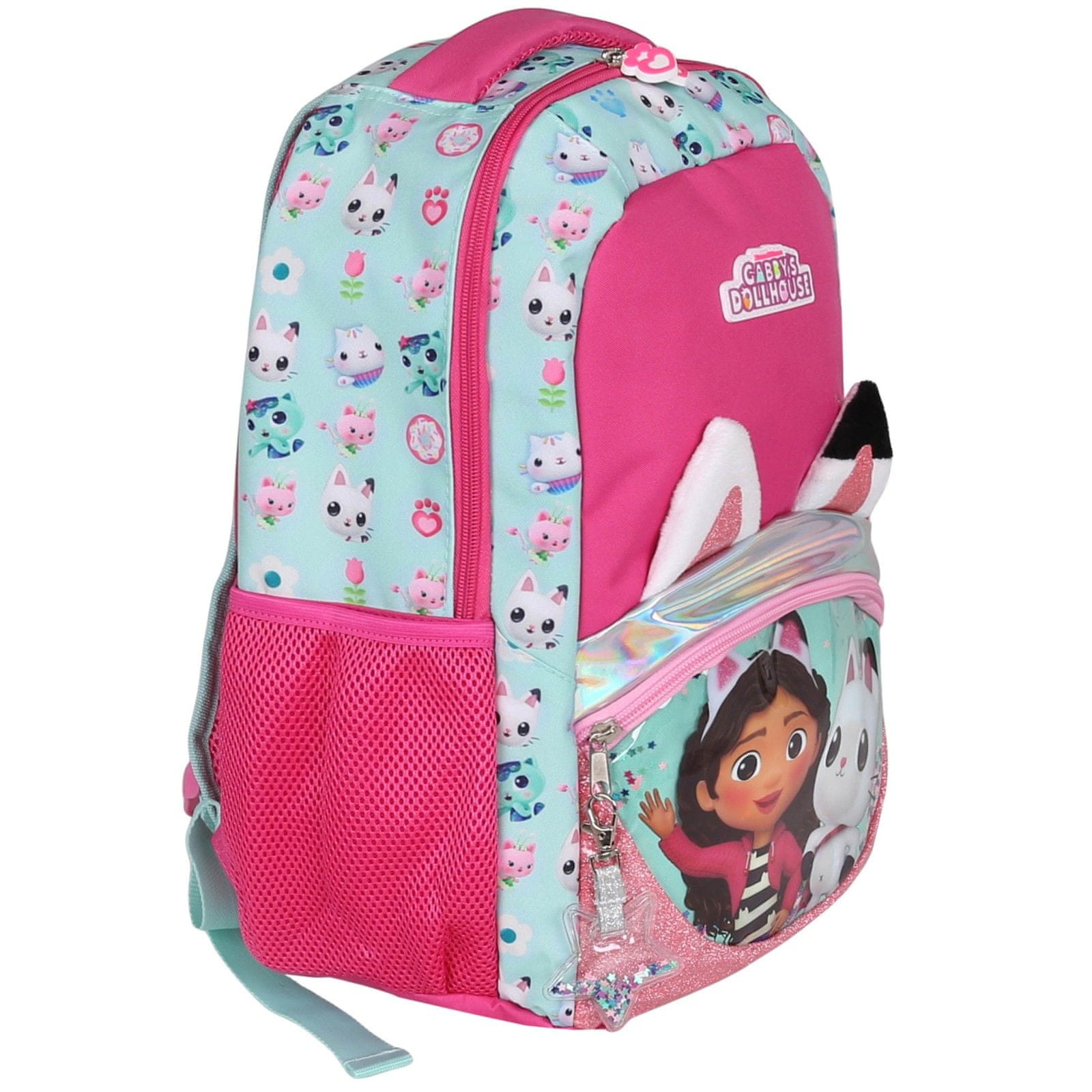 • Izvirne risane grafike – nahrbtnik in svinčnik krasijo liki iz serije „Gabby's Dollhouse“.