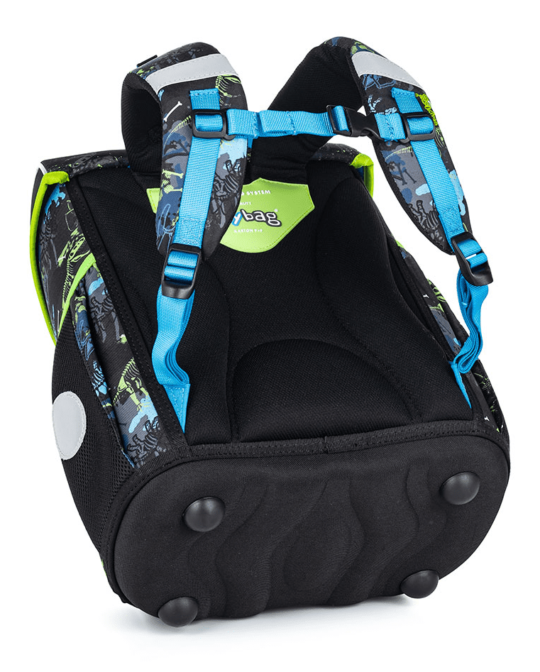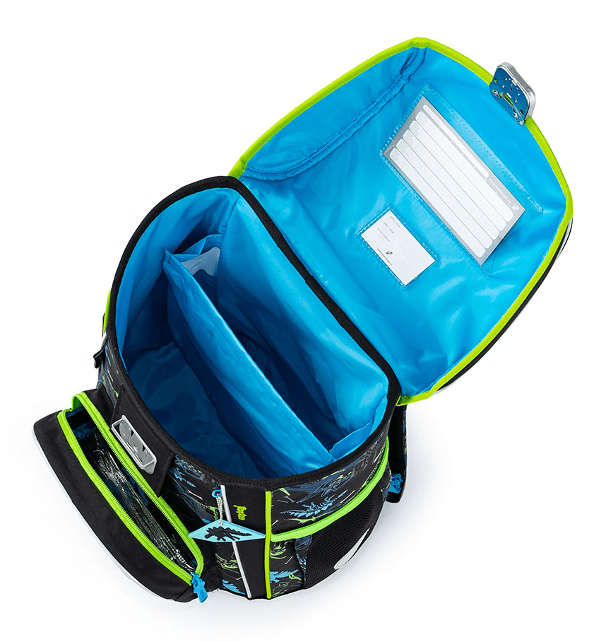 je anatomsko oblikovan, kar zagotavlja pravilno prileganje na hrbtu ojačan hrbet in notranja ojačitev ohranjata stabilno obliko nahrbtnika oblazinjenje je izdelano iz prijetnega materiala, ki diha široke mehčane naramnice so oblikovane tako, da se popolnoma prilegajo in enakomerno obremenijo otrokova ramena sestavljen je iz enega prostornega predala, v katerem so vse šolske potrebščine za otroke v 1. Dno nahrbtnika je izdelano iz trdnega materiala, ki ščiti vsebino pred prevrnitvijo in razlitjem Zapenjanje je z varnostno zaponko Sprednji žep je namenjen malicam Na nahrbtniku so številni odsevni elementi, zaradi katerih je aktovka bolje vidna