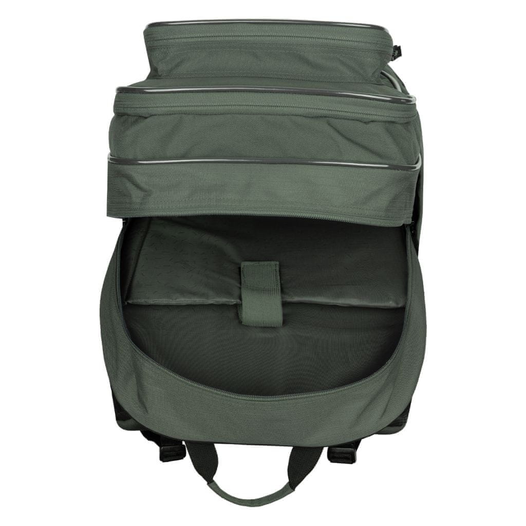 – Trije samozapiralni predali z notranjim organizatorjem in žepom za 15-palčni prenosni računalnik ali tablični računalnik. Ta notranji organizator omogoča enakomerno porazdelitev teže.