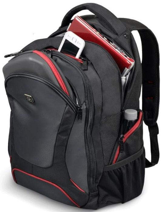 Nahrbtnik PORT Curchevel je športnega videza in nudi odlično zaščito za prenosnik do velikosti 39,6 cm (15,6"). Izdelan je iz kakovostnih materialov. Odlikuje ga velik predal za prenosni računalnik in velik sprednji predal za dodatke. Navdušuje s posebnim dodatnim predalom za tablični računalnik, za večjo zaščito pa skrbi priloženo pokrivalo za zaščito v primeru dežja. Lažje nošenje omogoča ergonomsko oblikovan zadnji del.