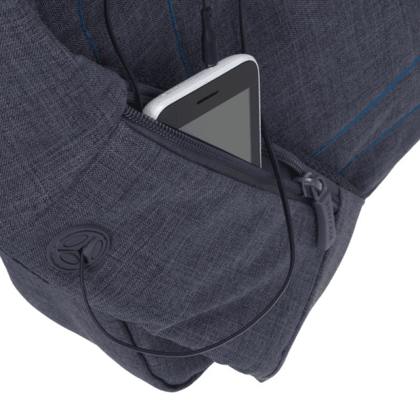 Na naramnici je predal za mobilni telefon v katerem je integrirana odprtina za slušalke.