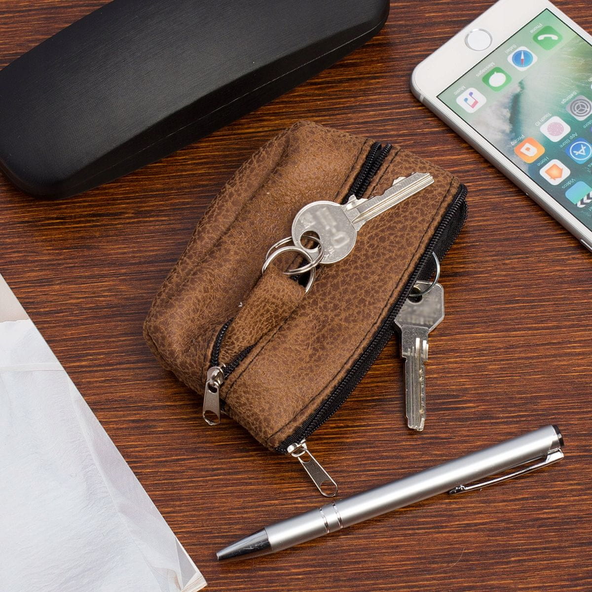 shumee ETUI ZA KLJUČE velik dvostranski etui iz nubuck usnja s 3 predelki, prostoren etui za ključe