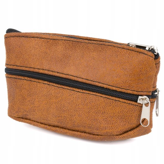 Čudovita torbica za ključe iz usnja nubuk! Dimenzije izdelka vam omogočajo, da v notranjost postavite tudi velike ključe. Etui je v celoti izdelan na Poljskem – iz edinstvenega ekološkega nubuk usnja. Obojestranska torbica, s predelki na zadrgo spredaj in zadaj. V enem od stranskih predalov je poseben obesek za ključe. Na sredini je tudi posebna obeska za ključe – največji predal. Notranjost je podložena s prijetno in elegantno podlogo. Mere (+/- 5%): Dolžina 12,5 cm Višina 7 cm Globina 4 cm Naslednja različica je na voljo v edinstveni barvi konjaka z edinstveno strukturo: Oba predelka sta neodvisna, ločena s pregrado iz netkanega materiala. Vsaka stran ima všito vrvico z obeskom za ključe. Etui se lahko uporablja tudi kot majhna denarnica za drobiž.
