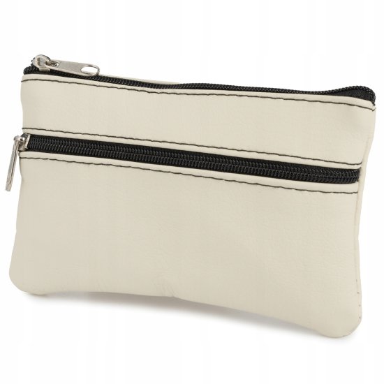 Fantastična etui za ključe iz eko usnja! Dimenzije izdelka vam omogočajo, da v notranjost postavite tudi velike ključe. Etui je v celoti izdelan na Poljskem – iz izjemno prijetnega in trpežnega ekološkega usnja. Dvoprekatna torbica z zadrgo. Na sredini je velik samostojen predal z vrvico za ključe. V stranskem predalu je tudi poseben obesek za ključe. Mere (+/- 5 %): Dolžina 12,5 cm Višina 8,5 cm Naslednja različica je na voljo v barvi ecru: Senzacionalna in zelo prostorna etui za ključe s tremi predelki. Etui se lahko uporablja tudi kot majhna denarnica za drobiž.