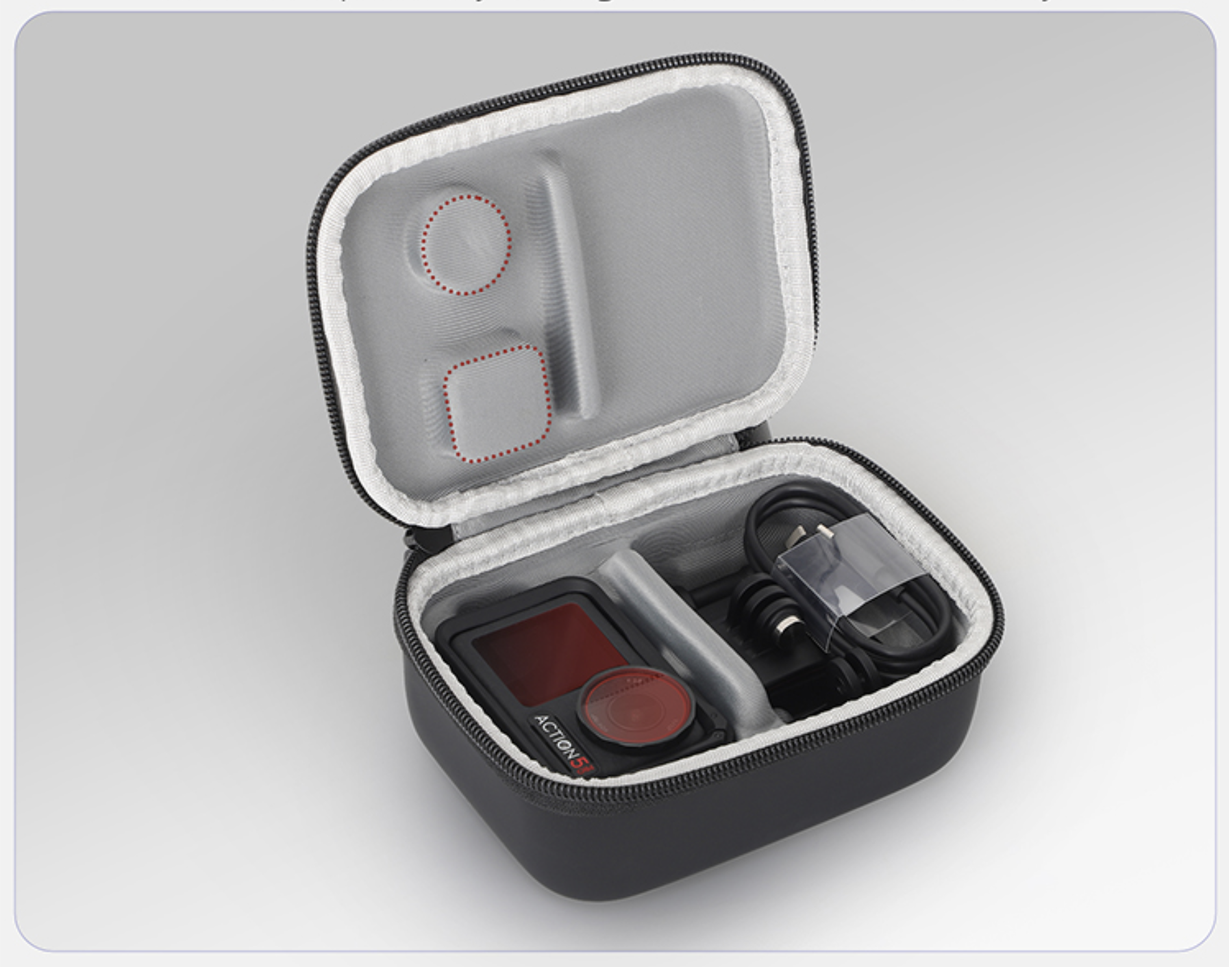 Vsi predelki v ohišju so zasnovani tako, da se popolnoma prilegajo kameri in dodatkom DJI OSMO ACTION 3 / 4 / 5 PRO .