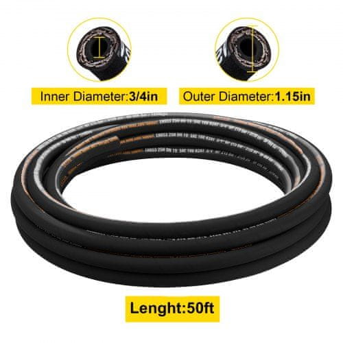 VEVOR Hidravlična cev 3/4 palca x 50 čevljev 3120 PSI fleksibilna gumijasta