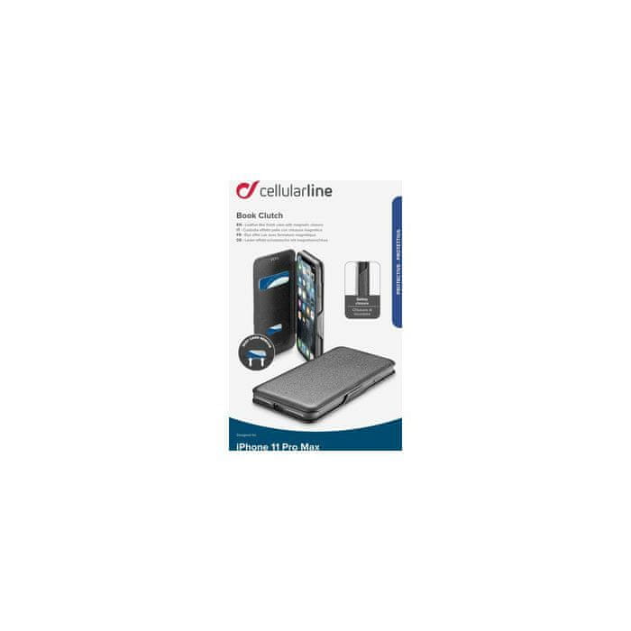 CellularLine BOOKCLU2IPHXIMAXK je elegantna preklopna torbica iz eko usnja, ki se zapira z magnetom. Telefon je popolnoma zaščiten. Vsebuje notranji žepek za shranjevanje kartice. Za Apple iPhone 11 Pro Max.