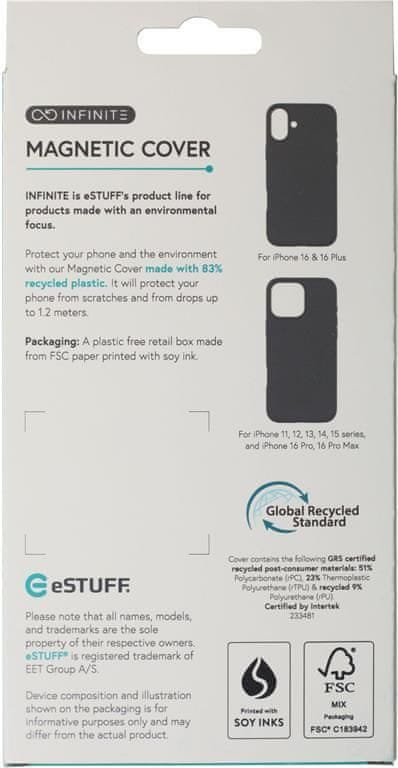 Ovitka vsebuje 65% Global Recycled Standard* certificiranega recikliranega Post-Consumer PC in 21% Global Recycled Standard* certificiranega recikliranega Post-Consumer TPU, certificirano s strani Control Union 1409828.