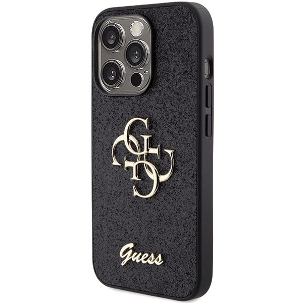 GUESS GUHCP15XHG4SGK silikonski ovitek za iPhone 15 Pro Max – črn z bleščicami in zlatim logom