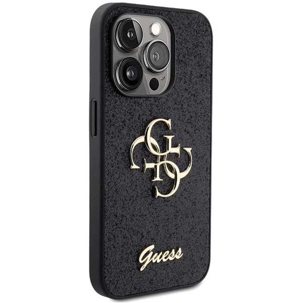 Guess GUHCP15XHG4SGK silikonski ovitek za iPhone 15 Pro Max - črn z bleščicami in zlatim logom