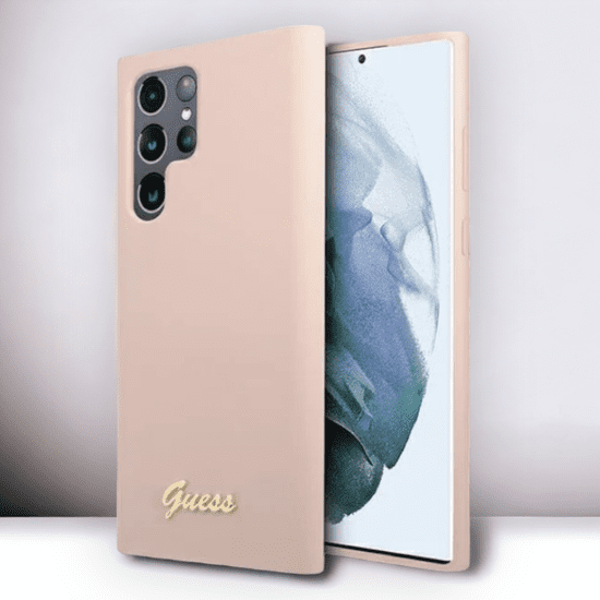 Guess Ovitek Guess "pink - Metal Logo" za Samsung Galaxy S23 Ultra (GUHCS23LLSLMGPP)