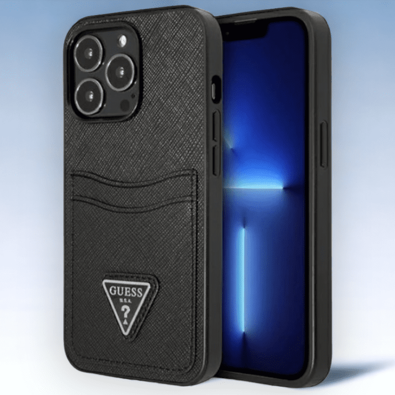 Ovitek z režami za kartice znamke Guess s trdim hrbtiščem in silikonskimi stranicami.