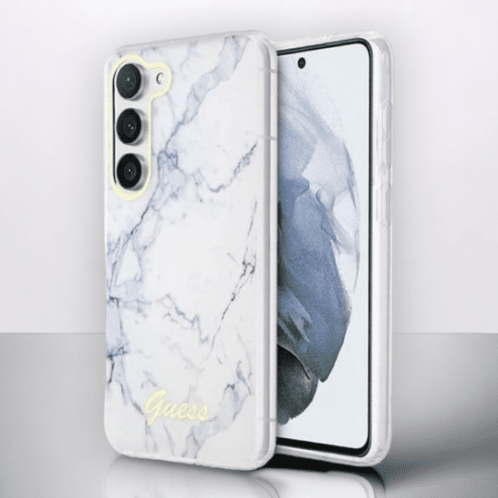 Guess Ovitek Guess "White marble" za Samsung Galaxy S23 (GUHCS23SPCUMAH)