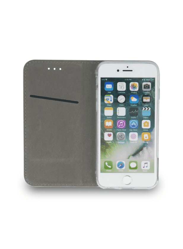 Notranjost torbice je iz mehkega materiala, ki odlično ščiti vaš telefon. Telefon je vpet v silikonski ovitek, ki ga zanesljivo drži