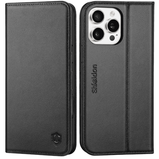 SHIELDON usnjena torbica – denarnica za iPhone 16 Pro Max (6,9", 2024), črna